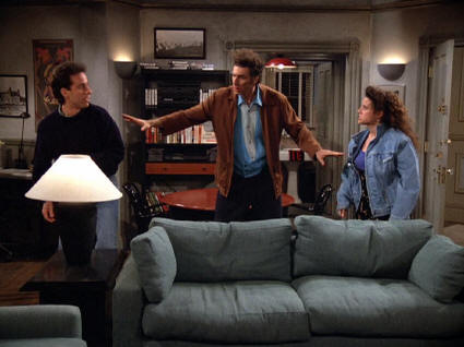 The line comes out of a conversation Jerry has with Elaine. If I remember correctly, Elaine is describing her new set of friends who are just like Jerry, George, and Kramer, but are the exact opposite. (I’ll have to confess I may have episodes mixed up, it has been years since I watched an episode, but that shouldn’t really matter since it’s a show about nothing).