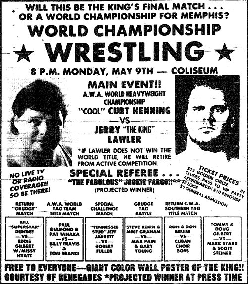 Our hero, the King of Rasslin’, Jerry Lawler, promised us that he would either become AWA World Champion or retire.